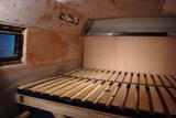Ce qui nous donne apres de longues heures de travail un petit nid douillet. J'ai plaquer le fond pour l'instant mais a long termes je compte faire comme starbuzz pour l'arriere. A l'heure d'aujourd'hui il manque quelque planche dans le fond et un revetement pour que sa soit plus jolie je pense mettre une sorte de jonc de mer coloré. Mais avant de faire sa il faut que j'amenage la partie au dessus des passage de roue en mettant des meubles et un faux placher pour acceder plus facilement au lit.